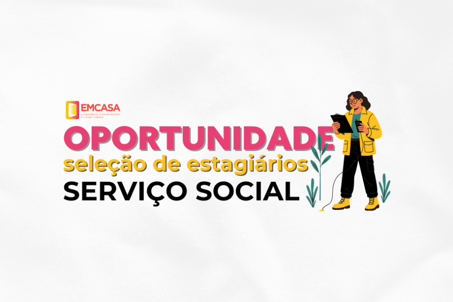 A EMCASA – Companhia Municipal de Habitação e Inclusão Produtiva está com seleção aberta para estagiários de Serviço Social, oferecendo uma excelente oportunidade para estudantes que desejam colocar em prática seus conhecimentos e vivenciar o dia a dia do trabalho… Continue a ler »EMCASA abre seleção para estagiários de Serviço Social